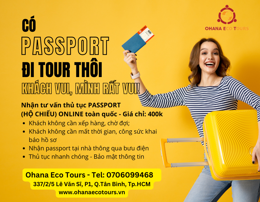 Trong thời đại toàn cầu hóa hiện nay, việc sở hữu một chiếc hộ chiếu chỉ đơn thuần là giấy tờ tùy thân mà còn là chìa khóa mở ra cánh cửa đến với những trải nghiệm mới mẻ và thú vị trên khắp thế giới. Bạn có biết rằng việc làm hộ chiếu truyền thống thường tốn nhiều thời gian và công sức? Đừng lo lắng, dịch vụ tư vấn làm hộ chiếu online của Ohana Eco Tours sẽ giúp bạn giải quyết mọi vấn đề một cách nhanh chóng và tiện lợi nhất.