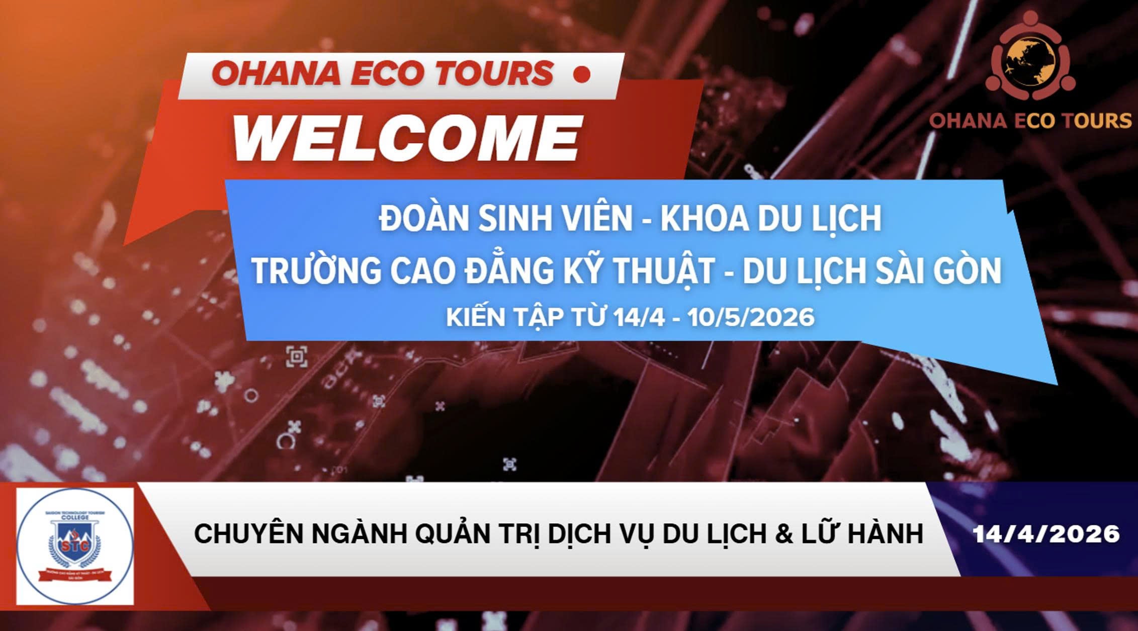Sáng ngày 14/04/2026, Công ty Du lịch Ohana Eco Tours đón tiếp đoàn sinh viên Khoa Du lịch - Trường Cao Đẳng Kỹ Thuật Du lịch Sài Gòn đến tham gia kỳ kiến tập tại Doanh Nghiệp.